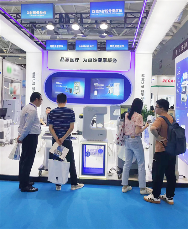 在這場醫(yī)療科技的盛宴中,品源醫(yī)療以其非凡的創(chuàng)新實力和精湛品質(zhì),成為了展會中的一顆璀璨明珠。此次展出的雙能X射線骨密度儀、超聲骨密度檢測儀、X射線骨齡儀、動脈硬化檢測儀以及肺功能測試儀系列產(chǎn)品,憑借著檢測精準(zhǔn),人性化的設(shè)計理念以及舒適、便捷的檢測體驗,吸引了眾多國內(nèi)外客商和專業(yè)人士的目光。